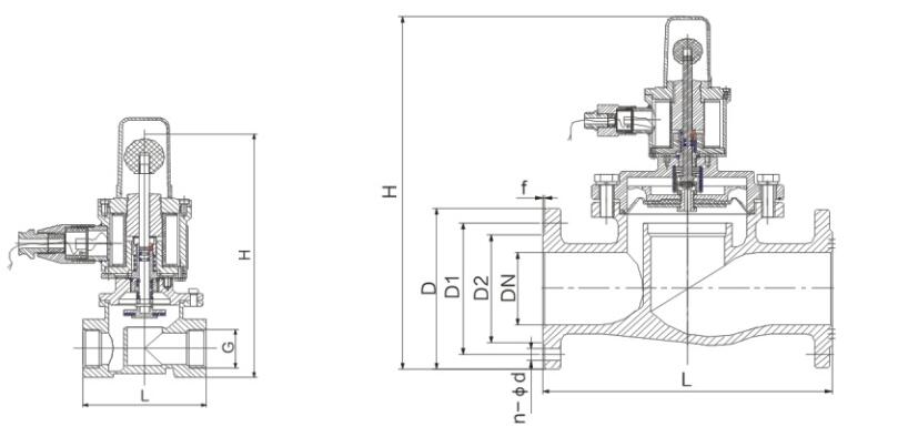 | mm | G | L | H | D | D1 | D2 | f | n-φd | L | H | 螺纹 | 法兰 |