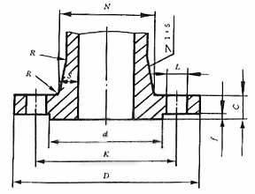 凹凸面整体铸钢管法兰(JB/T79.2-94) PN10.0MPa单位: mm