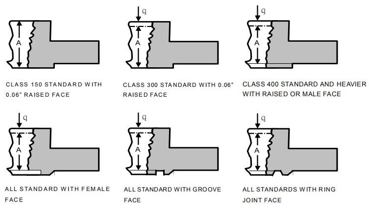 | Diameter of Contract Face | 1/16” Raised Face | ±1/32” (0.8mm) |