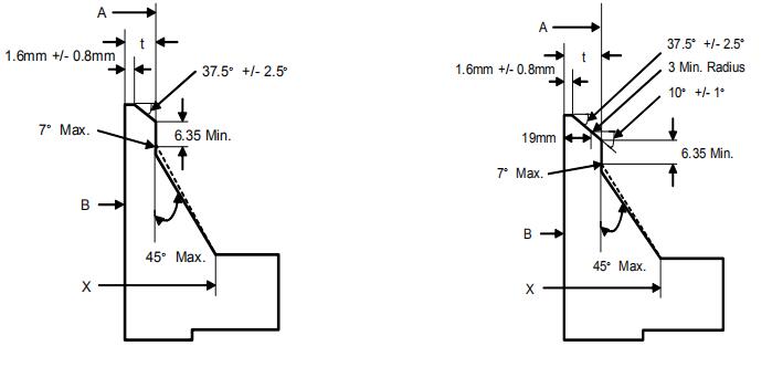 21/2” Smaller 1/32” (0.8mm) Max. 3” & Larger 1/16” (1.6mm) Max. |