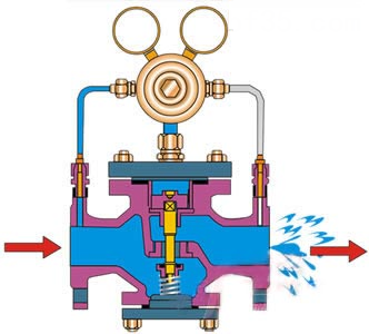 ①为了操作和维护方便,该气体减压阀一般直立安装在水平管道上,横向安装须特别说明。
