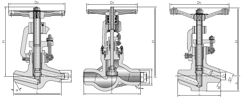 J61Y对焊截止阀适用于公称压力PN20~32MPa及P54/100V-P57/170V ,工作温度≤540℃(其中P57/170V工作温度为570℃)的石油 、化工 、水力 、火力电站各种系统的管路中,切断或接通管路介质,,适用介质为:水、油品、蒸汽等。操作方式有:手动、齿轮传动、电动等。