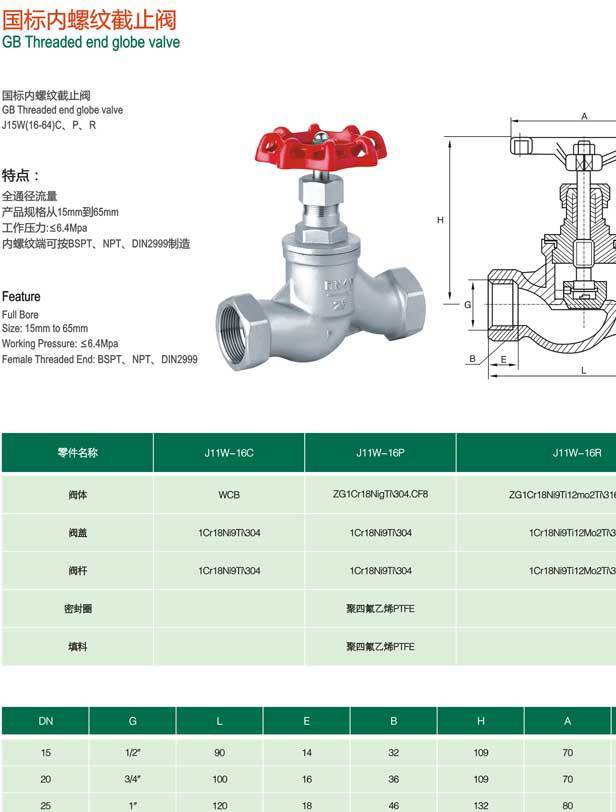 | J11W、J11H-16P | 铬镍不锈钢 | 铬镍不锈钢 | 聚四乙氟乙稀、柔性石墨 |