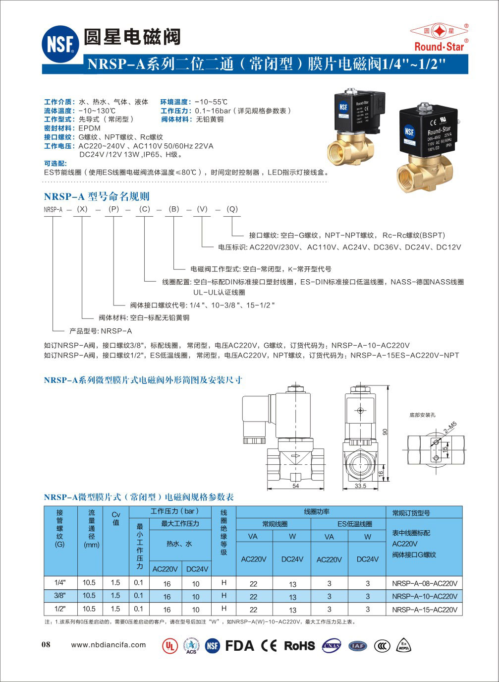 NRSP-A先导式电磁阀(常闭型)工作原理;