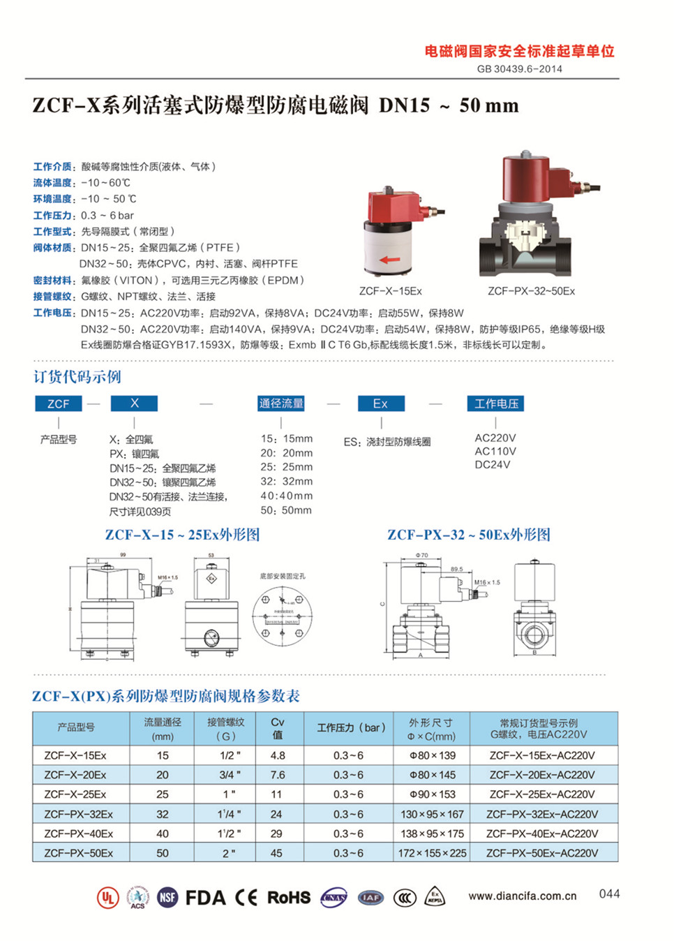 ZCF-X系列活塞式防爆型防腐电磁阀DN15~25mm图片;