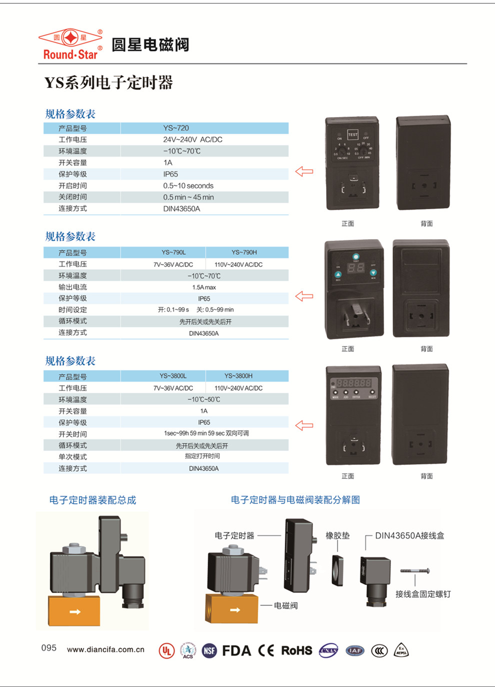 一,安全。腐蚀介质最 好选择塑胶王电 磁阀和全不锈钢电 磁阀;对于强腐蚀介质。一定要选择隔膜型。Z3CF例CD-F。在中性介质中,也最 好选用铜合金作阀壳材料的电磁阀,否则,阀壳内常有锈蚀脱落,特别是先导电磁阀动作不频繁的场合。氨用阀门不能用铜。爆炸环境必须选择相应防爆等级的产品,露天安装或有粉尘的场所,应选择防水,防尘的品种。电磁阀的额定压力应超过管内的最 高工作压力。第二,适用性。1.介质特性1.1质气,液体或混合状态分别选用不同品种的电磁阀,例句ZQDF用于空气,ZQDF-Y用于液体,ZQDF-2(或-3)用于蒸汽,否则容易造成误动。而ZDF系列的多功能电磁阀可以通向气体。液体。最 好的办法是将媒体状态通知给用户,这样用户就不用再调整了。1.2不同介质温度规格的产品,否则线圈会被烧掉,密封老化,严重影响寿命。1.3介质粘度,通常低于50cSt。如果超过这个值,通径大于15毫米的特殊要求,可购买ZDF系列多功能电磁阀。小于15mm的通径预定高粘度电磁阀。1.4介质清洁度不高时,水管电 磁阀应在电磁阀前配置回流式过滤阀,压力低的可选用直动膜片式电磁 阀作如CD—P。1介质若是定向循环,则不允许倒流。