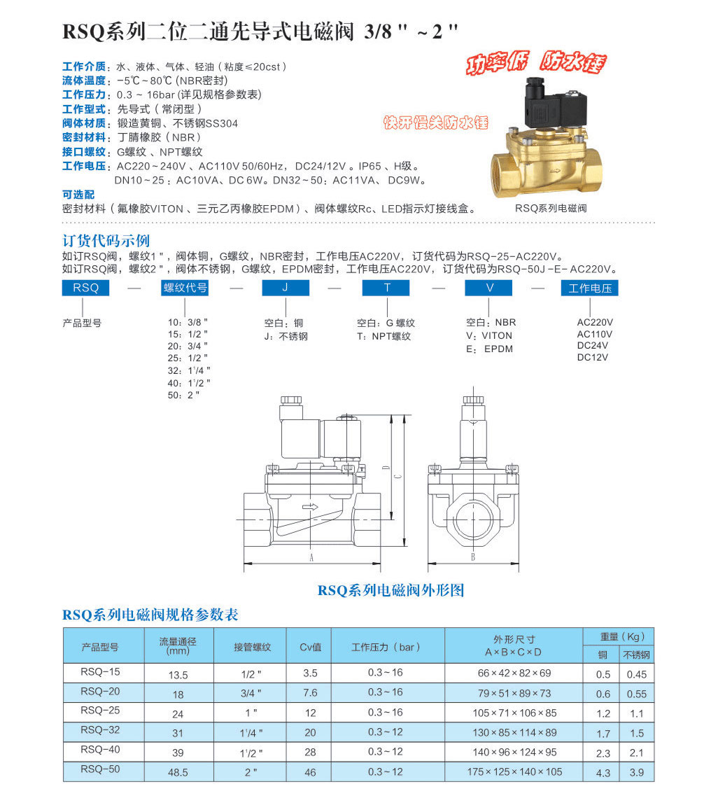 RSQ低功耗防水锤电磁阀外形结构尺寸图;