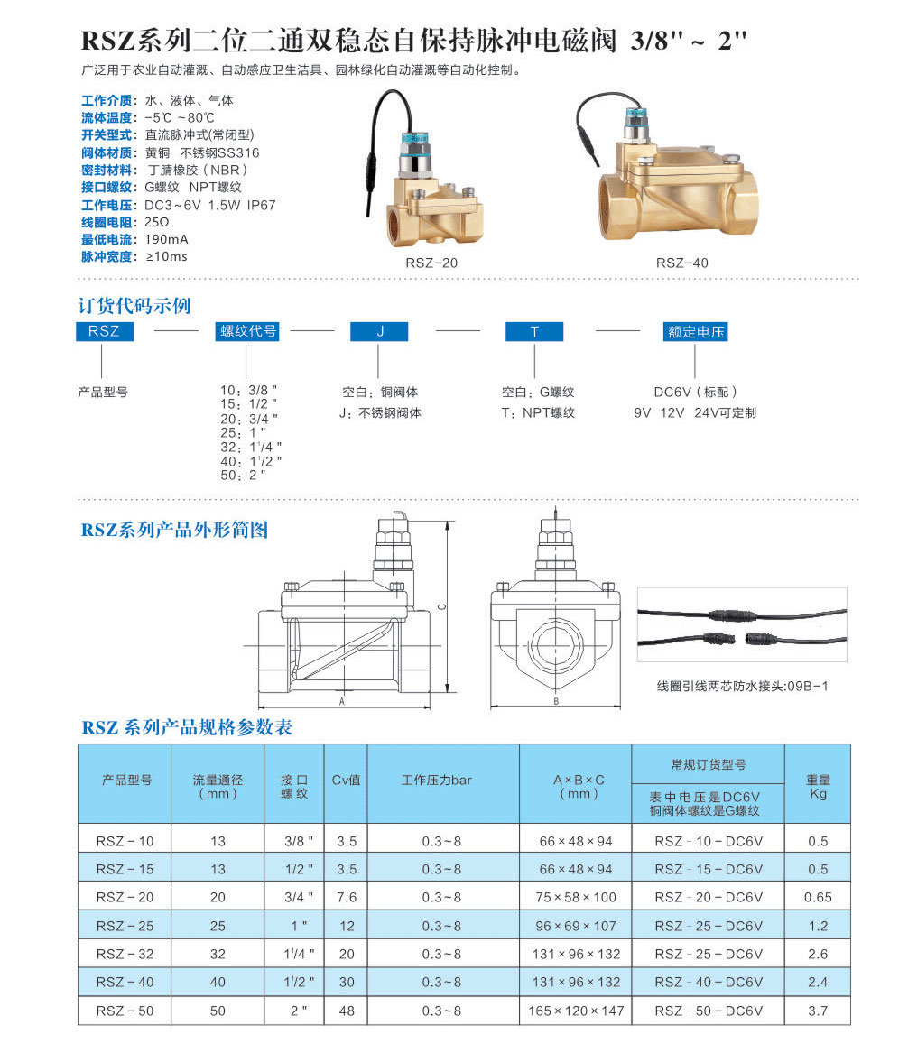 RSZ双稳态自保持电磁阀外形结构尺寸图;