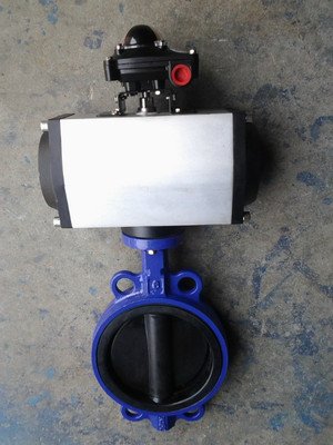 气动蝶阀结构简单,体积小重量轻,造价低,气动蝶阀安装在高空暗道,经过二位五通电磁阀控制操作方便,也可调节流量介质。流体阻力较小,中大口径的气动蝶阀全开时有效流通面积较大,启闭迅速省力,碟扳旋转90角度即可完成启闭,由于转轴两侧蝶板手介质作用力接近相等,而产生的转矩方向相反,因而启闭力矩较小,低压下可实现良好的密封,气动蝶阀可分为单作用和双作用,普遍单座的气动蝶阀被称之为