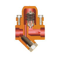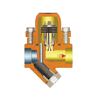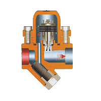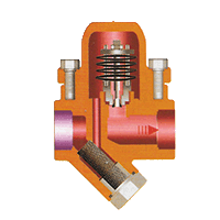 4、积存在阀内的热凝水慢慢冷却降温后,膜片因内压减小而收缩,带动阀芯开启阀门,继续排放凝结水,由于阀前始终存有热凝水,形成汽水分离,无蒸汽泄漏。 |