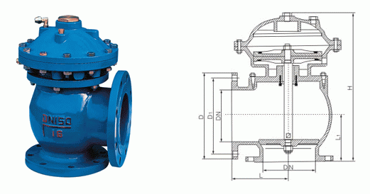3、采用双室隔膜传动机构,阀门开启平稳快捷,比活塞式阀门具有以下优点: