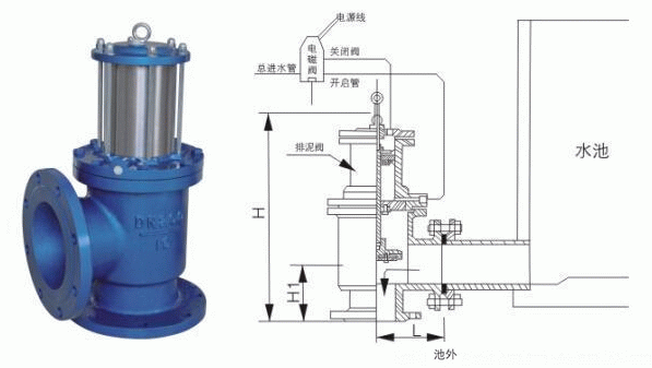 J744X液压角式快开排泥阀主要用于自来水公司各类水池,排除池底泥沙或污物。也可安装在工作介质为水、气、池等工业管道中作截流用。排泥阀应安装在原管线的最低点,并选用与排污水流成切线的排泥三通,还应考虑到排放过程中冲刷对附件基础的影响,排泥阀安装完毕后应及时关闭。