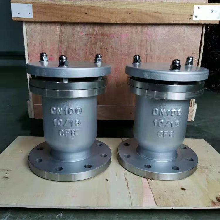 管道在运转时,浮球停在球碗底部,进行大量排气,当管内空气排完,水冲进阀内,经过球碗然后反应浮球,使浮球浮动关闭,管道在正常运转时,如有少量气体会集中到阀内到相当程度,阀内水位下降,浮球随之下降,气体从小孔排出。如水泵停止,随时会产生负压力,浮球随时下降,进行大量吸气确保管路安全。