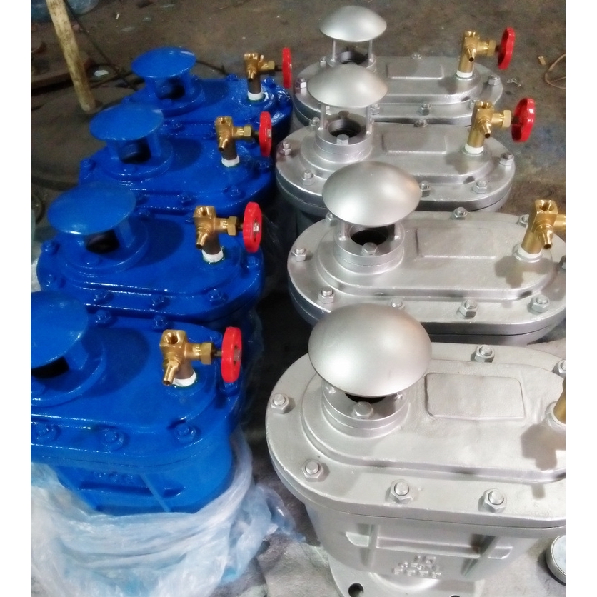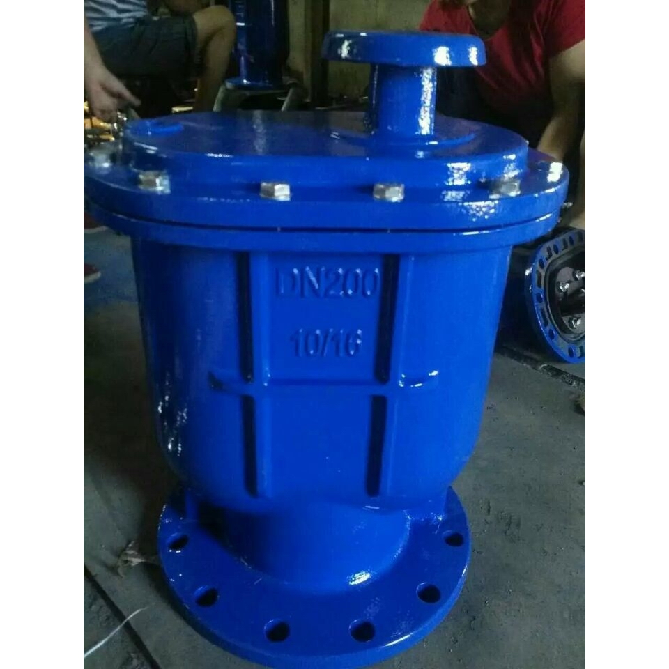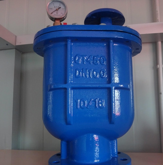 当管内开始注水时,塞头停留在开启位置,进行大量排气,当空气排完时,阀内积水浮球被浮起,传动塞头至关闭位置,停止大量排气;当管内水正常输送时,如有少量空气聚集在阀内到相当程度,阀内水位下降,浮球随之下降,此时空气则由小孔排出。当抽水机停止,管内水流空时,或遇管内产生负压时,此时塞头开启,吸入空气确保管线安全。