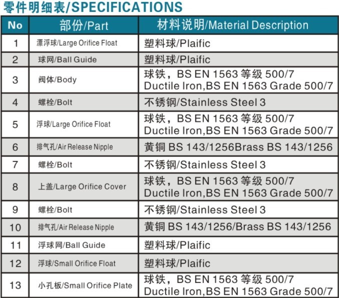 三、AV高速双孔排气阀的技术参数
