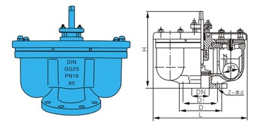 当管内开始注水时,塞头停留在开启位置,进行大量排气,当空气排完时,阀内积水,浮球被浮起,传动塞头至关闭位置,停止大量排气,当管内水正常输送时,如有小量空气聚集在阀内到相当程度,阀内水位下降,浮球随之下降,此时空气由小孔排出,当抽水机停止,管内水流空时或遇管内产生负压时,此时塞头迅速开启,吸入空气,确保管线完全。