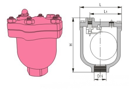 | 公称通径DN(mm) | 进口尺寸 | 出口尺寸 | 排气孔尺寸(mm) | H | L | L1 |
