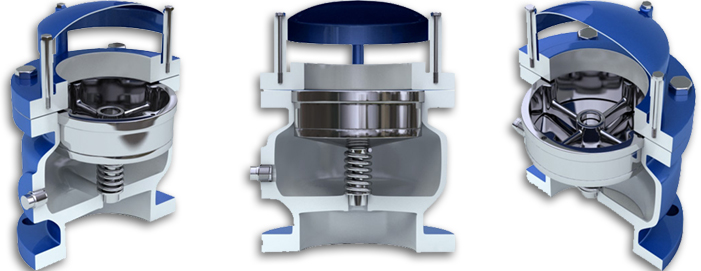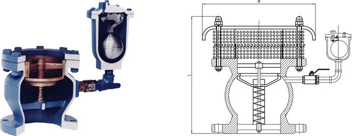 2、高速排气能力应能满足本工程的初始充水速度要求,在充水时不管射出的气流速度有多大(充水压力较高时),底部、中部浮球都不能提前气堵关阀。但是,当充水流速过快,空气阀内的压差达到7KPa时,顶部浮球能可靠关闭主排气孔口,通过顶部浮球上的转换小排气孔口高速排气,并维持合适的充水背压和充水流速,使得充水水柱在合适阻力的作用下慢慢地接近空气阀,避免空气阀充水过快引起自身的关阀水锤。