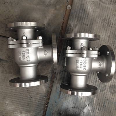Q44F、Q45F不锈钢三通球阀有T型和L型。T型能使三条正交的管道相互联通和切断第三条通道,起分流、合流作用。L型只能连接相互正交的两条管道,不能同时保持第三条管道的相互连通,只起分配作用。