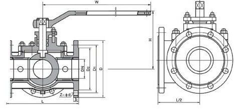 Q44H,Q45Y硬密封三通球阀有T型和L型。T型能使三条正交的管道相互联通和切断第三条通道,起分流、合流作用。L型只能连接相互正交的两条管道,不能同时保持第三条管道的相互连通,只起分配作用。