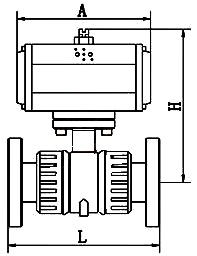 | 气动塑料球阀 (法兰) | 气动塑料球阀 (双由令活接) |