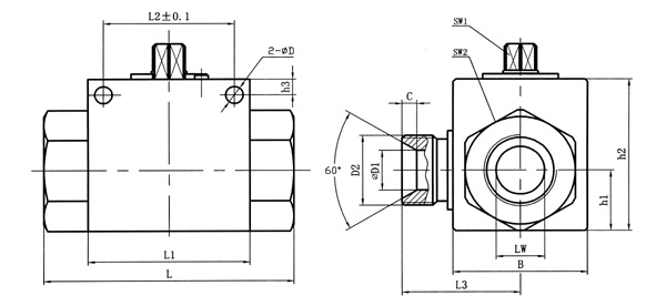 | 简略型号 | PN | DN | LW | RA | d1 | i | L | L1 | B | L2 | h1 | h2 | SW1 | SW2 | D | h3 | L3 | D1 | C |