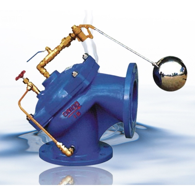 100A隔膜式定水位阀是一种隔膜式调节水箱和水塔液面高度的阀门。阀门由一特殊强化尼龙膜片将其分为上下两个腔室,当液面达到设定位置时,浮球导阀关闭,上腔压力大于下腔,阀门关闭,即停止供水.当液面下降超过预设位置,浮球导阀开启,上腔压力小于下腔压力,阀门开启.阀门向池内供水。隔膜式定水位阀安装方便,可省去管道弯头,节省安装空间。该阀保养简单、灵活耐用、液位控制准确度高,水位不受水压干扰且关闭紧密不漏水,性能可靠、成本低。浮球可随水池的高度和距离安装。