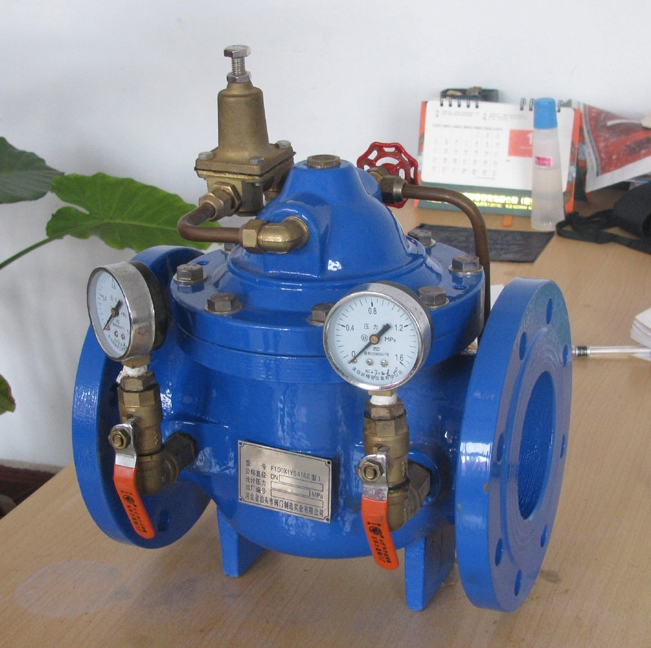 800X压差旁通阀主要由针阀,压差控制导阀,球阀,微型过滤器和压力表组成水力控制阀接管系统,通过专门设计导阀控制室,对压力变化信号进行比较,输出主阀开度信号,控制主阀开度,从而控制主阀出口压差在设定值上。