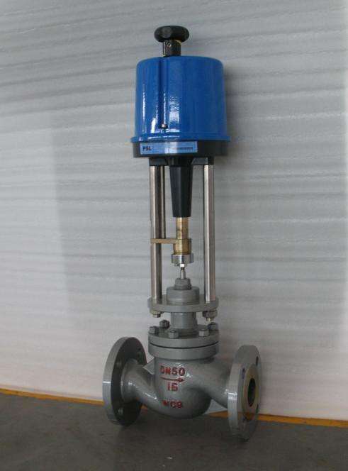2、ZDLP、ZDLM电动燃气调节阀是由PSL系列和3810L系列智能型电子式电动执行器通过支架与单座、套筒调节阀连接在一起所 组成。当输入端无信号时,执行器稳定在预选的零位,调节阀处于全开或全闭的位置,执行器的输出轴通过开合螺 母与调节阀的阀杆相连。当输入端有信号时输出轴即通过输入信号按一定比例处在一定的位置,调节阀即处于所需开度,从而达到了调节和控制的目的。电动燃气调节阀分为电开式和电闭式两种。通过选择电子式电动执行器的正、反 作用开关来实现电开式和电闭式调节。