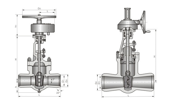 Z61Y高温高压焊接闸阀有两种标准形式,一种是遵循ANSIB16.34和JISL1E101标准的引进型,另一种是按JB3595标准的国标型。其遵循的温度-压力等级是一致的,在一些管道中存在着某种互换关系。电站焊接闸阀中部采用无阀盖压力自紧式,在高温高压工况下具有良好的密封性能。自密封圈有两种材料,一种是低碳钢,另一种是柔性石墨316丝(网)。密封面上层焊钻基硬质合金,其加工后的纯金属层≥3mm,具有耐磨、耐高温、抗腐蚀、抗擦伤、使用寿命长。支管两端为焊接结构,焊按坡口可按标准或用户要求制作。电站焊接闸阀适用于火电厂、石油化工、冶金等高温高压的水、冶金等高温高压的水、蒸汽、油品、过热蒸汽的管道上。